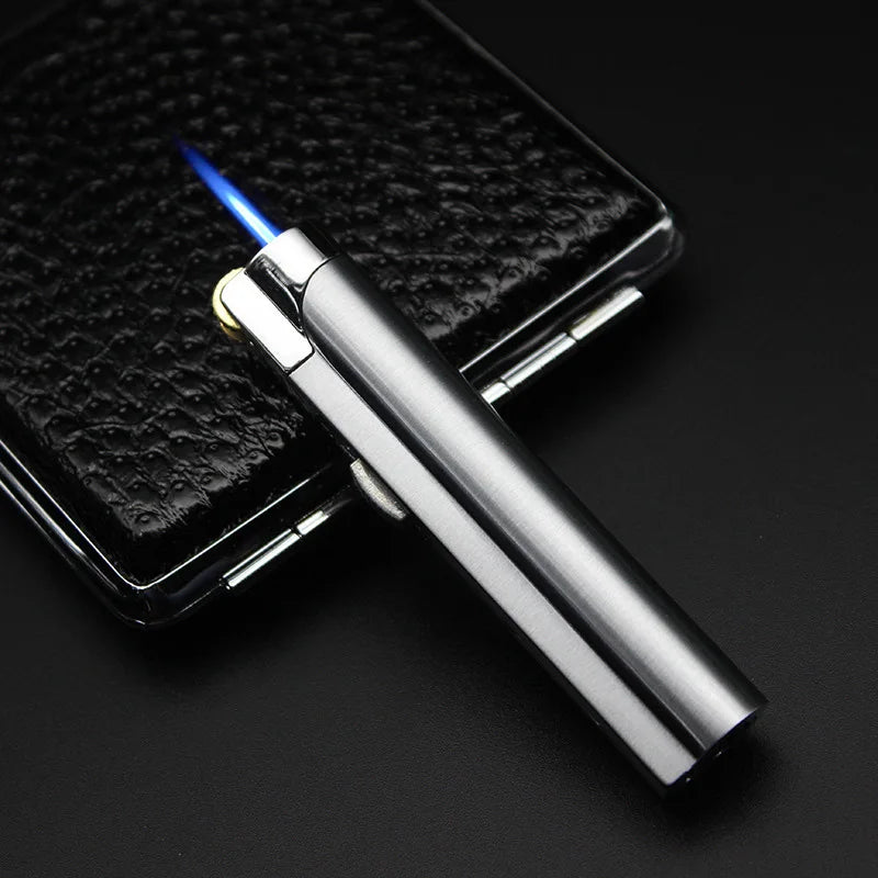 Encendedor de antorcha de chorro con rueda de molienda de bloqueo seguro, mecheros de Gas butano recargables para cigarros y cocina